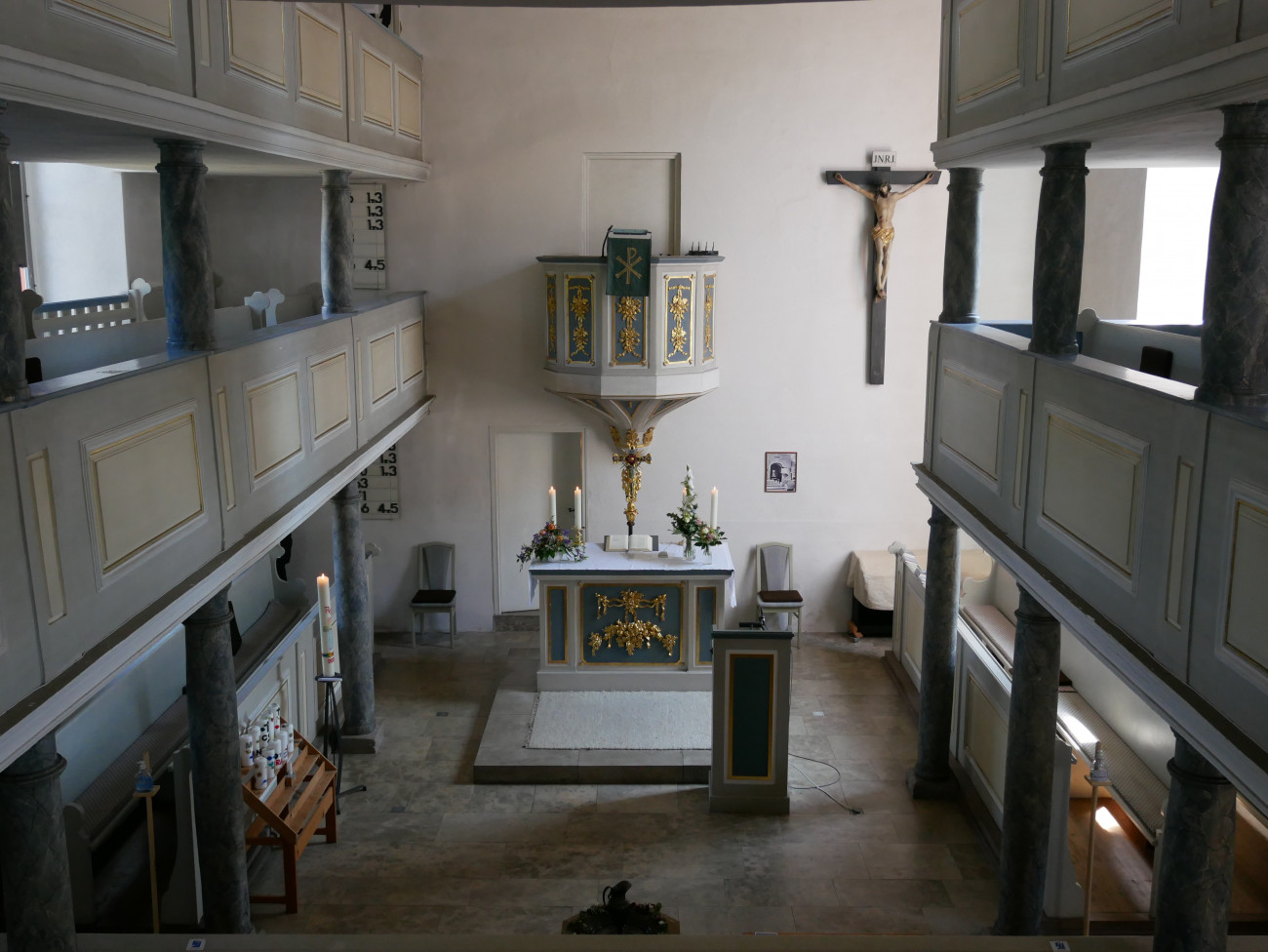 Im Rahmen einer Renovierung wurde 1964/65 der Chorbogen abgemauert und die Kanzel über dem nach vorne gesetzten Altar neu angeordnet. Der ehemalige Chorraum wird heute als Sakristei genutzt.